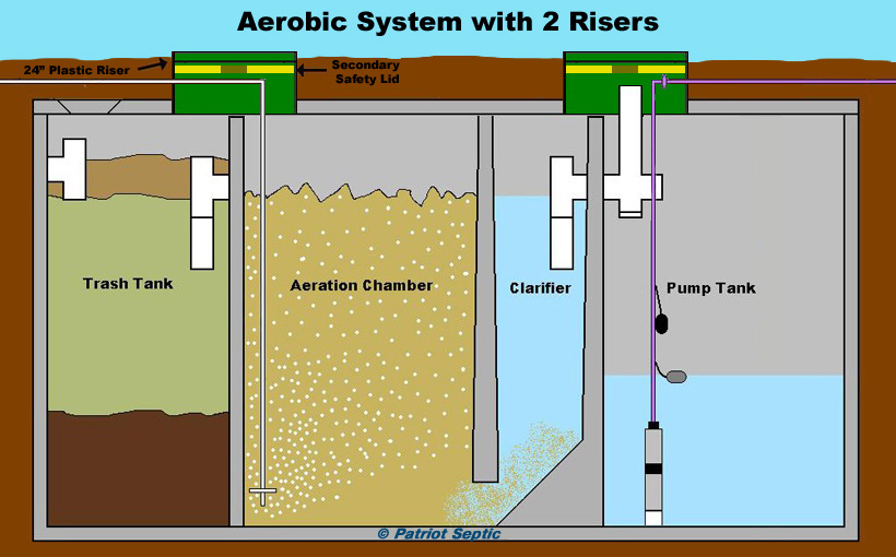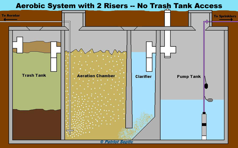 Waste from the house is fed into a "trash tank" (similar to a septic tank); septic solid waste and scum are retained in the trash tank and, as with a conventional septic tank, must be periodically removed by a septic pumping company. (aerobic septic systems require more frequent septic tank pumping than a conventional septic system.)